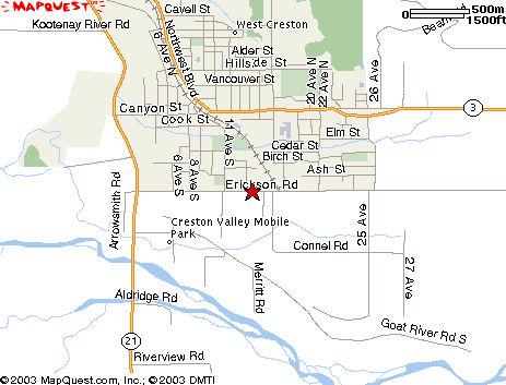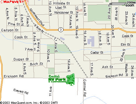 | It's so easy to get to Scotties RV Park & Campground Scotties RV Park and Campground located in Creston in southeastern British Columbia. We are about 8 miles north of Idaho, 60 minutes west of Cranbrook and 70 miles from Nelson. Being located on Erickson Road it is very accessible from all directions. You can't miss our signs.